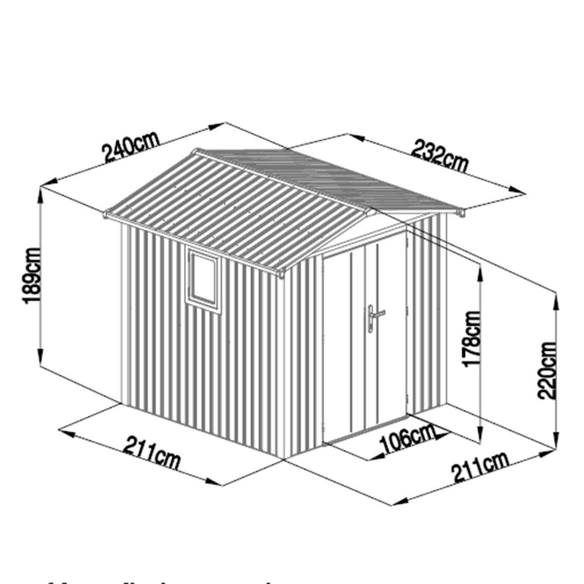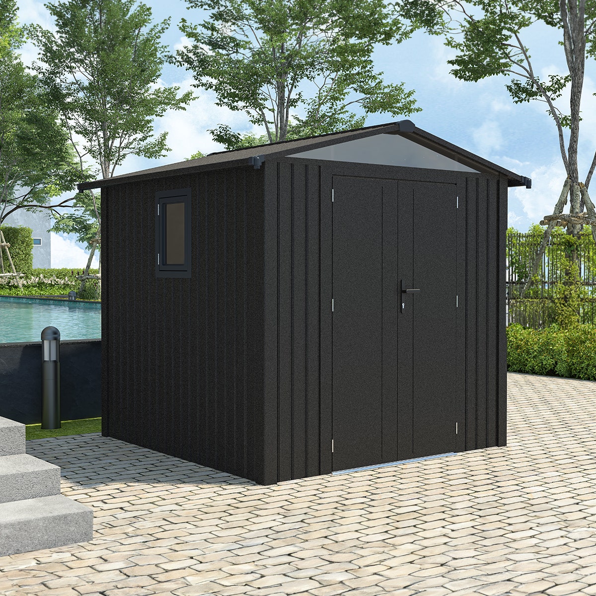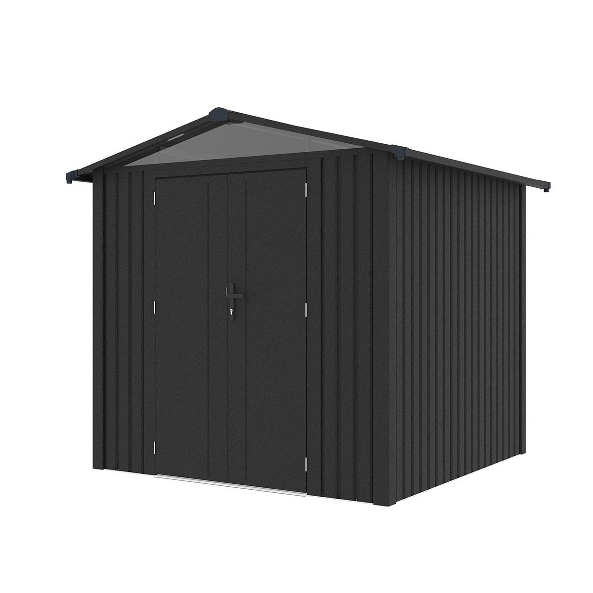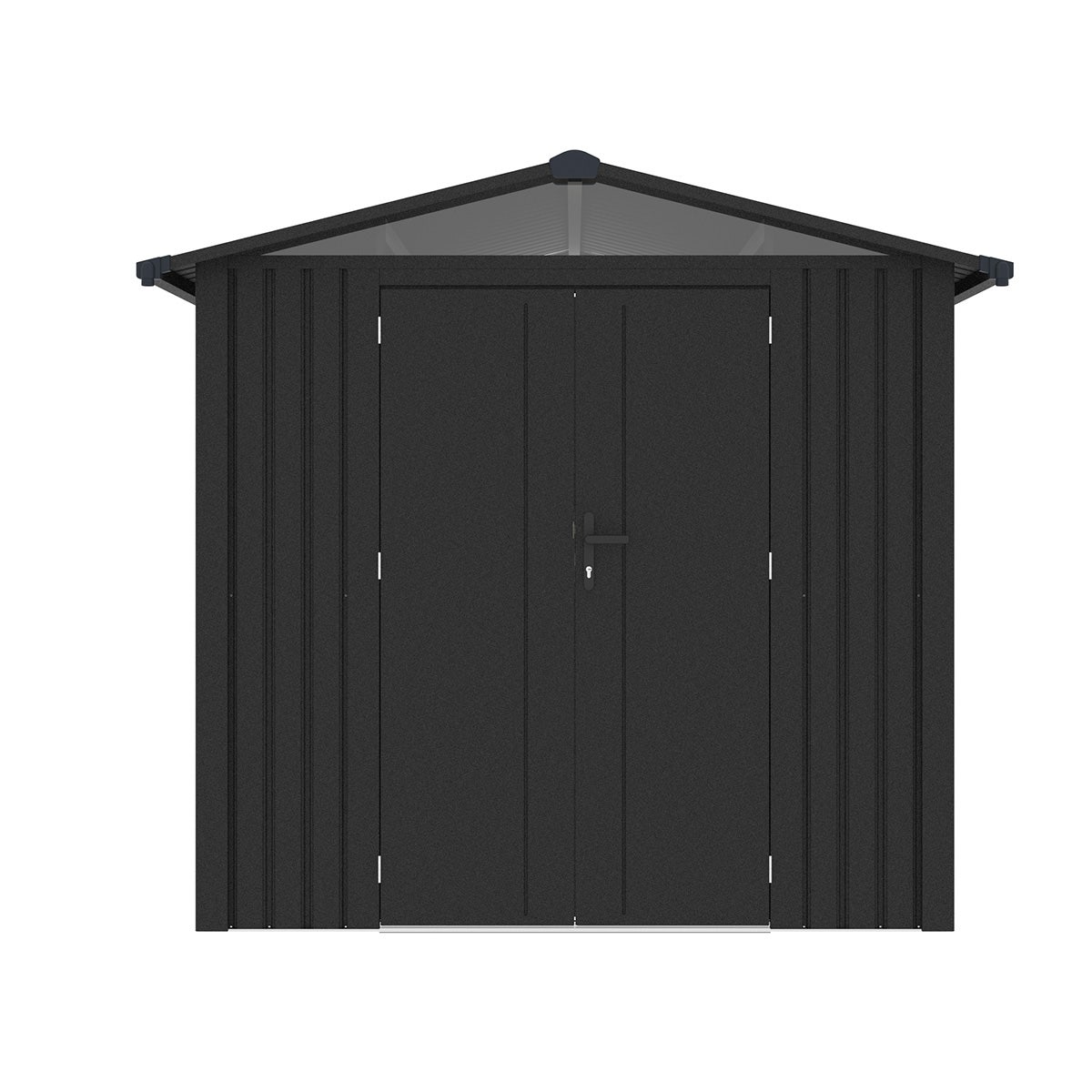 Abri de jardin métal anthracite 4.37 m² + kit d’ancrage