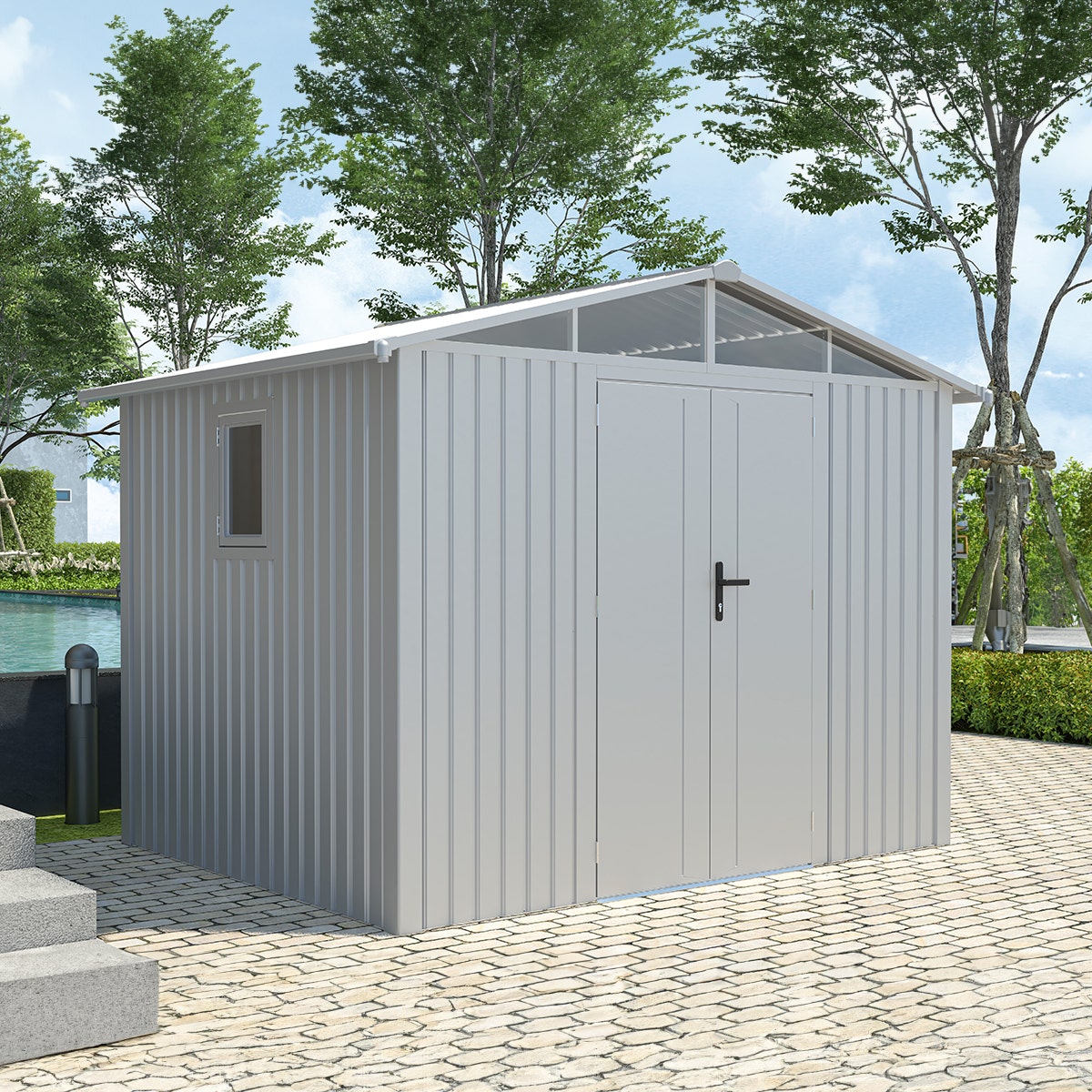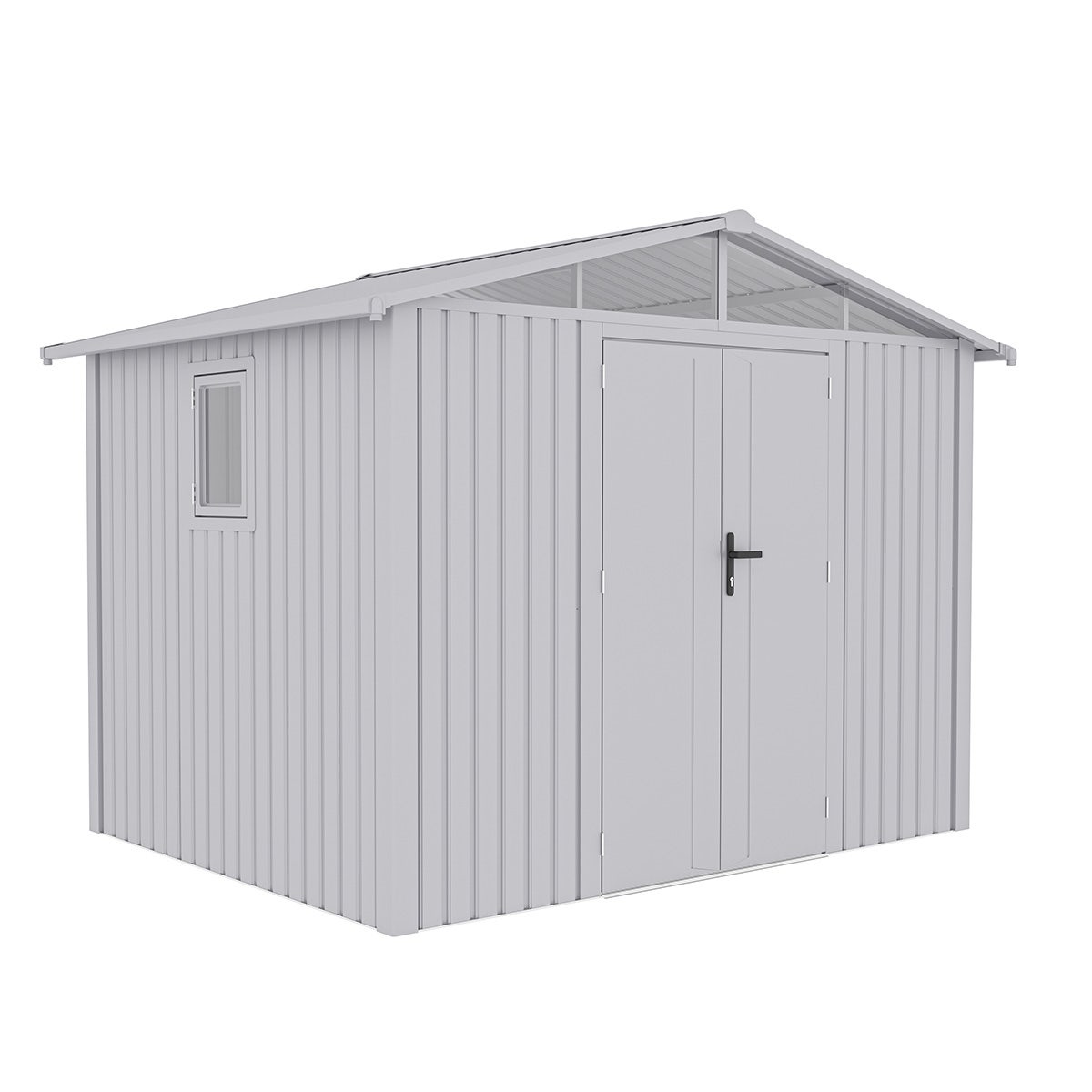Abri de jardin métal blanc aluminium 5.71 m² + kit d’ancrage