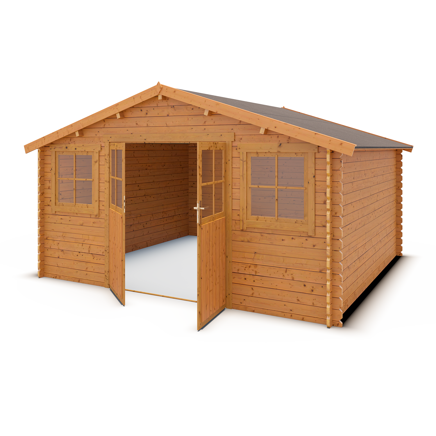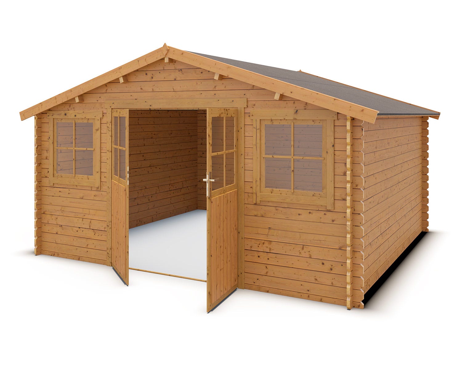 Cet abri de jardin est très robuste avec ses parois de 28 mm d’épaisseur dont le bois est traité autoclave classe 3 (insecticide et fongicide) ce qui signifie que son entretien est quasiment réduit à néant sans nuire à sa durabilité. Sa structure est composée de madriers à emboîter qui facilitent le montage mais confèrent aussi une grande résistance au bâtiment. Les grandes vitres invitent la lumière à l’intérieur et la double porte avec sa large ouverture laisse passer les gros volumes (brouette, tondeuse, mobilier) qui peuvent s’empiler aisément grâce à une belle hauteur de mur. Cet abri dispose d’une poignée de porte avec serrure pour protéger son contenu.