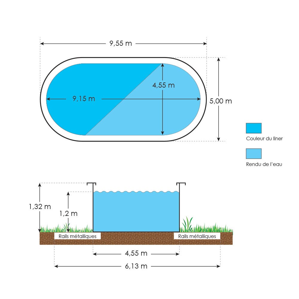 Piscine hors sol acier et résine ovale 9,15 x 4,55 x 1,32 m gris dégradé LIBERTY