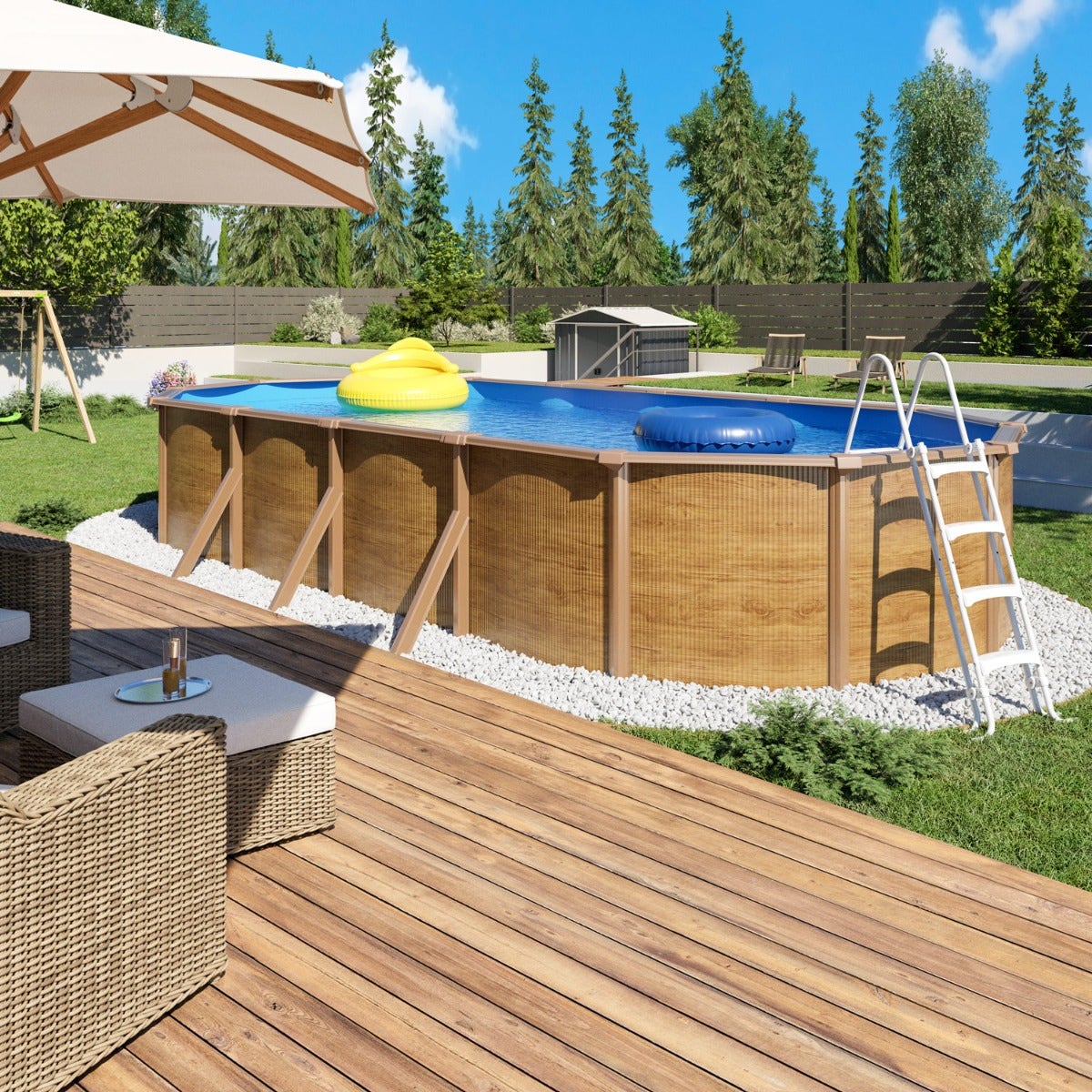 Ces journées idylliques sont dorénavant accessibles à tous grâce aux piscines hors sol. Faciles à monter et à entretenir, elles nécessitent un terrassement moindre par rapport à une piscine enterrée et sont disponibles dans de nombreux formats réduits ou très généreux. Les piscines rigides en acier sont très résistantes et leurs aspects variés permettent une intégration réussie dans la plupart des jardins.