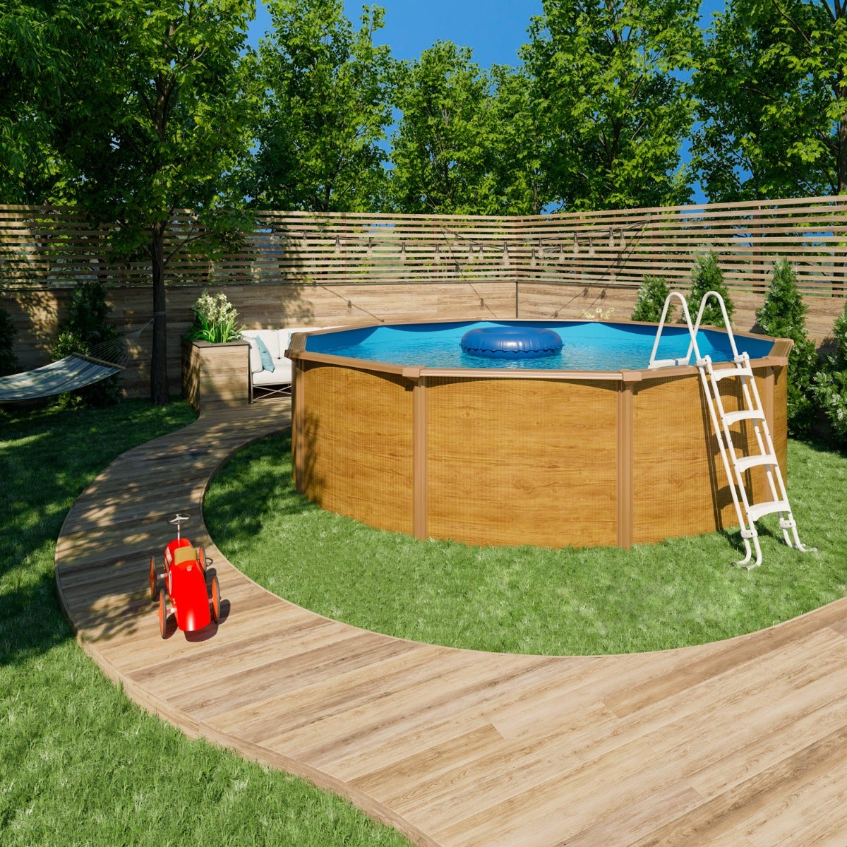 Ces journées idylliques sont dorénavant accessibles à tous grâce aux piscines hors sol. Faciles à monter et à entretenir, elles nécessitent un terrassement moindre par rapport à une piscine enterrée et sont disponibles dans de nombreux formats réduits ou très généreux. Les piscines rigides en acier sont très résistantes et leurs aspects variés permettent une intégration réussie dans la plupart des jardins.
