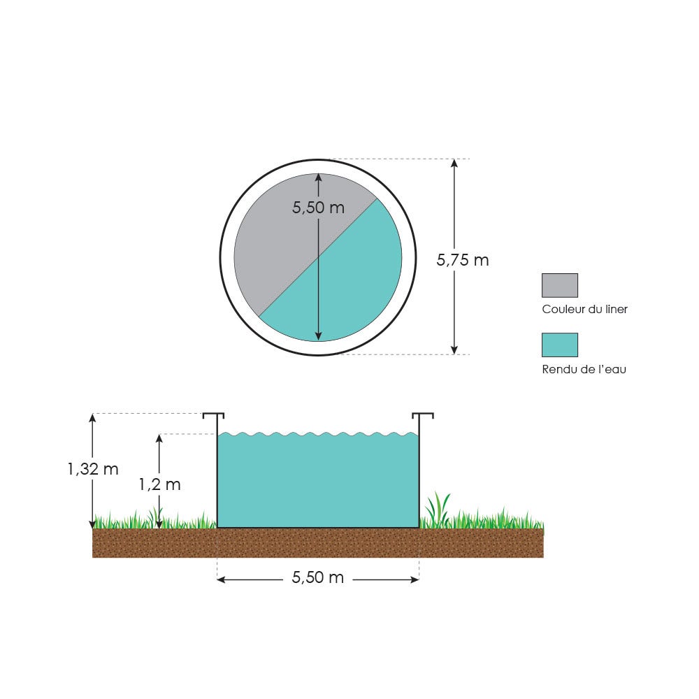 | Longueur extérieure avec margelles | Ø 5,75 m |
