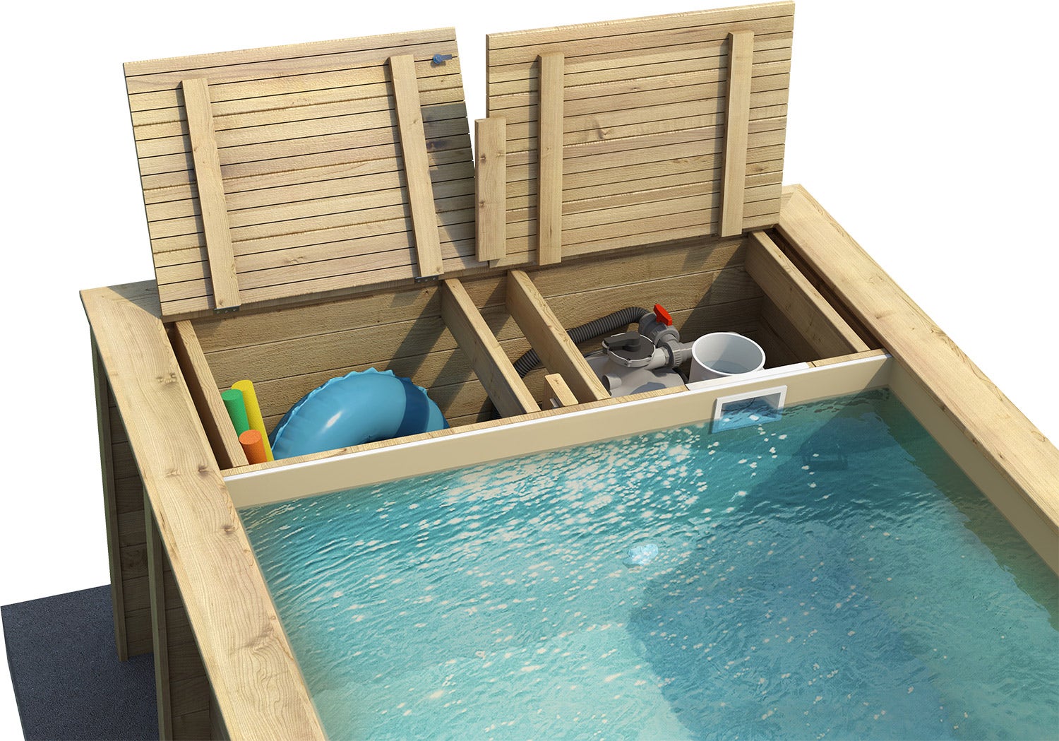 Une piscine dans le jardin, quel bonheur pour les enfants (et les plus grands) ! Découvrez sans plus tarder Pool’n box : élégante, robuste et astucieuse. Pas de tuyaux apparents ou de bouées qui traînent. Grâce au coffre intégré, votre jardin restera net et organisé sans effort. A vous les jeux d’eau endiablés et les journées d’été à la fraîche avec les copains.
