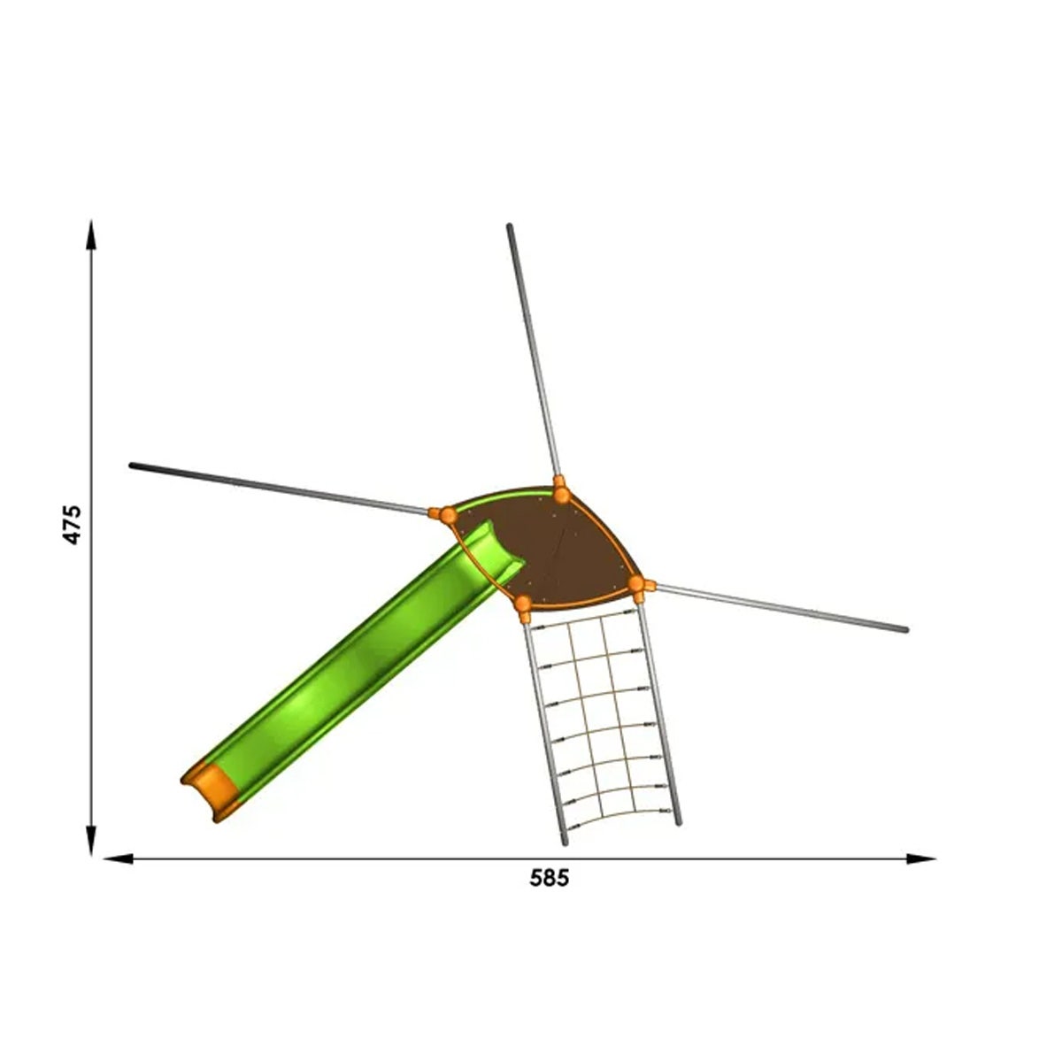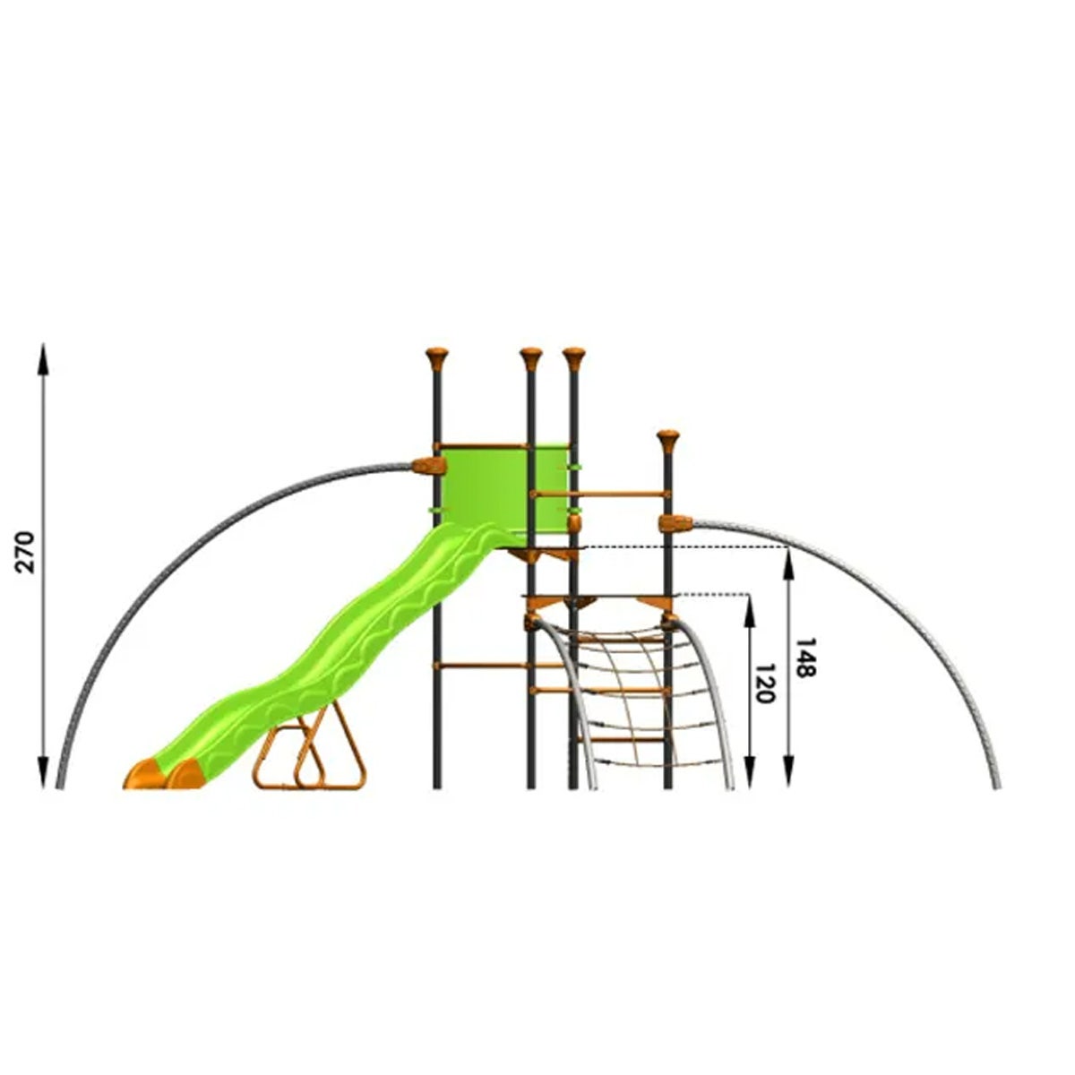 Votre structure EVO COSTO est la plus grande de la gamme EVO. A ce titre, la tour centrale est double et le toboggan qui l’accompagne est plus grand avec une longueur de glisse étendue de 3,32 m. La structure dispose de 3 arches de soutien (1 moyenne et 2 grandes) sur lesquelles se fixent les jeux-agrès.