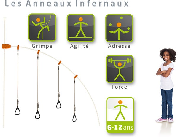 Les anneaux infernaux peuvent accueillir 2 enfants et s’installent sur la grande arche (196 cm).